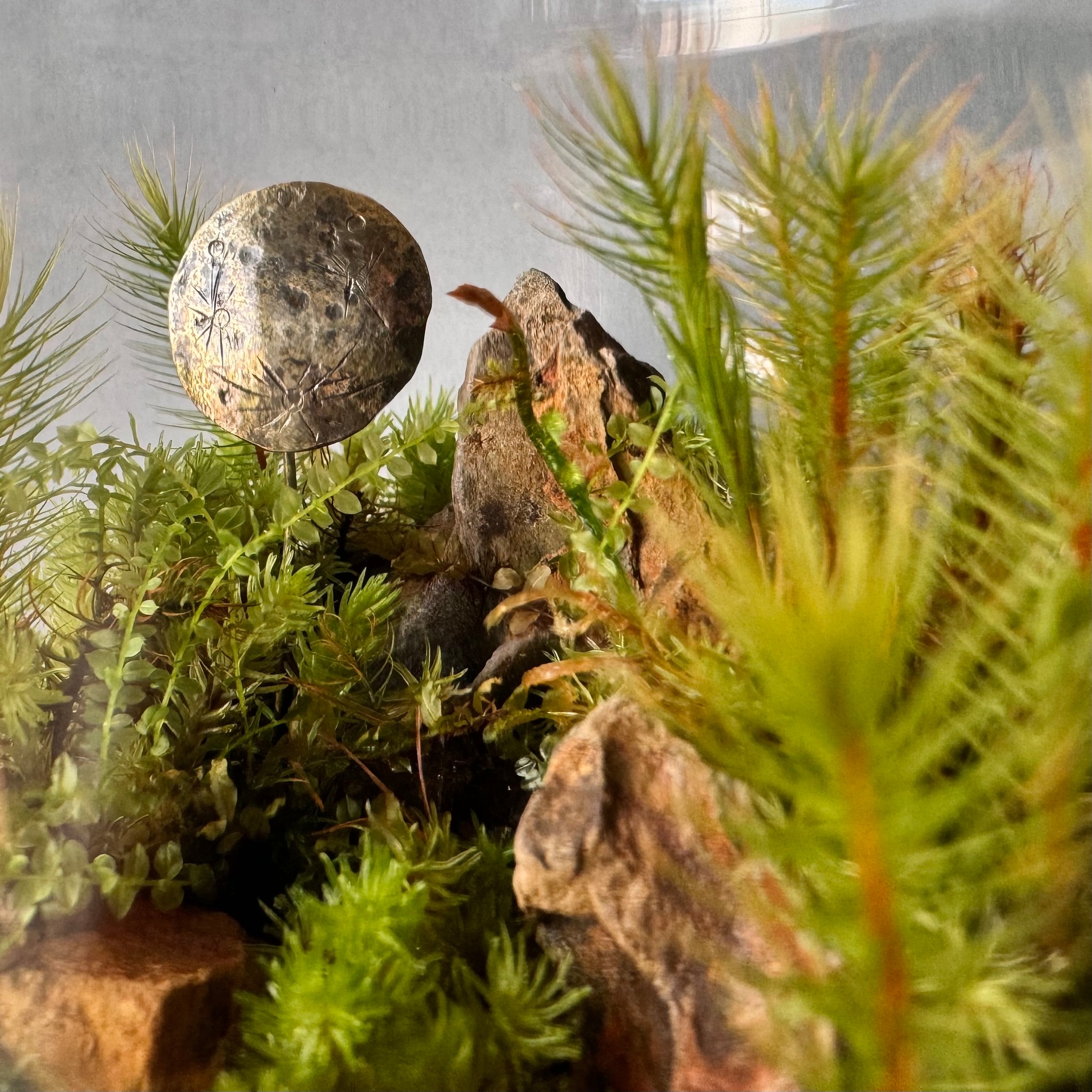さて、こちらは以前、ワークショップで作ったテラリウムです、家に帰って真鍮で月を作りました。