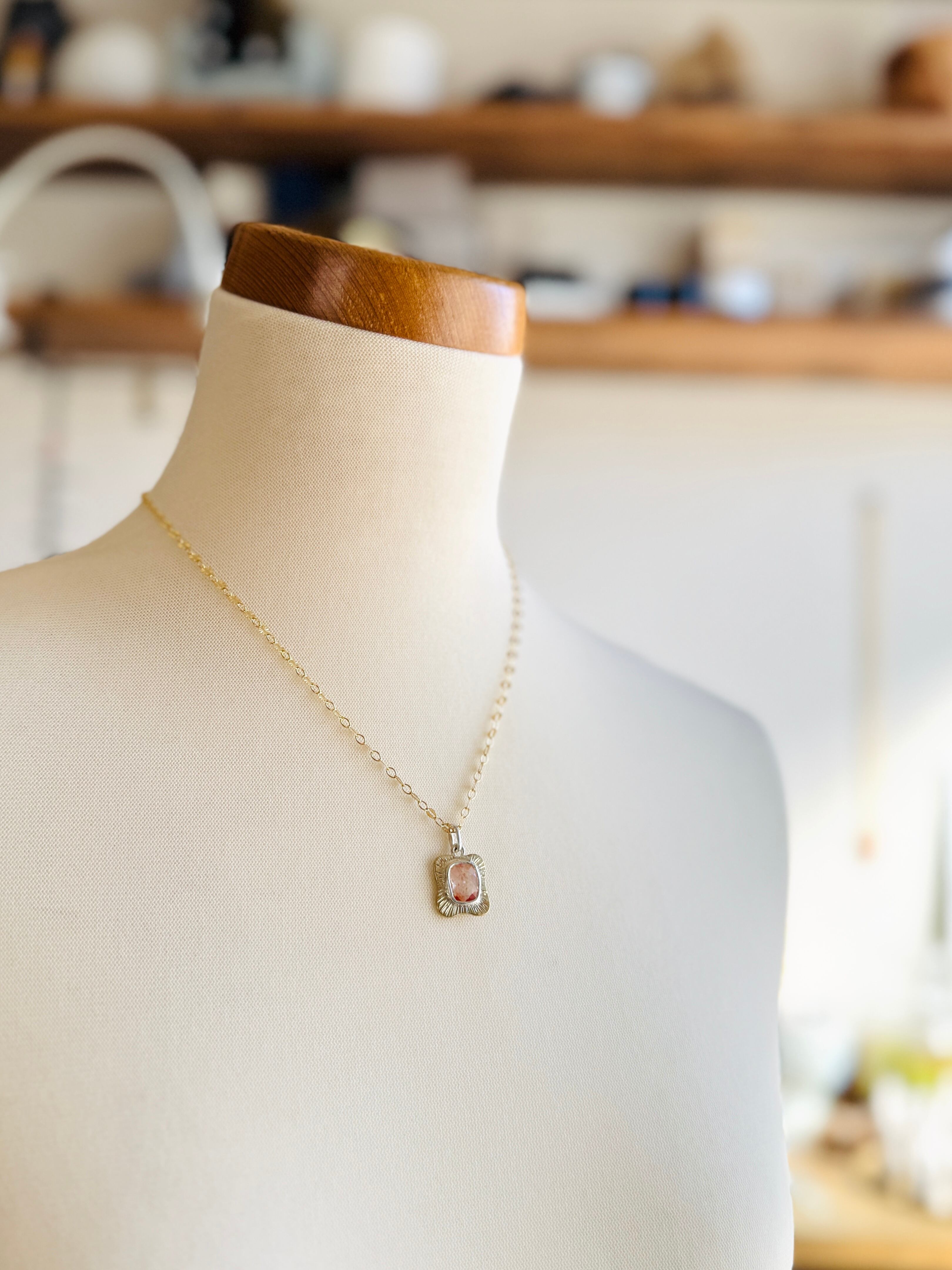 使用しているのは、内包された鉄分が夕焼け色に発色したリモナイトインクォーツ。