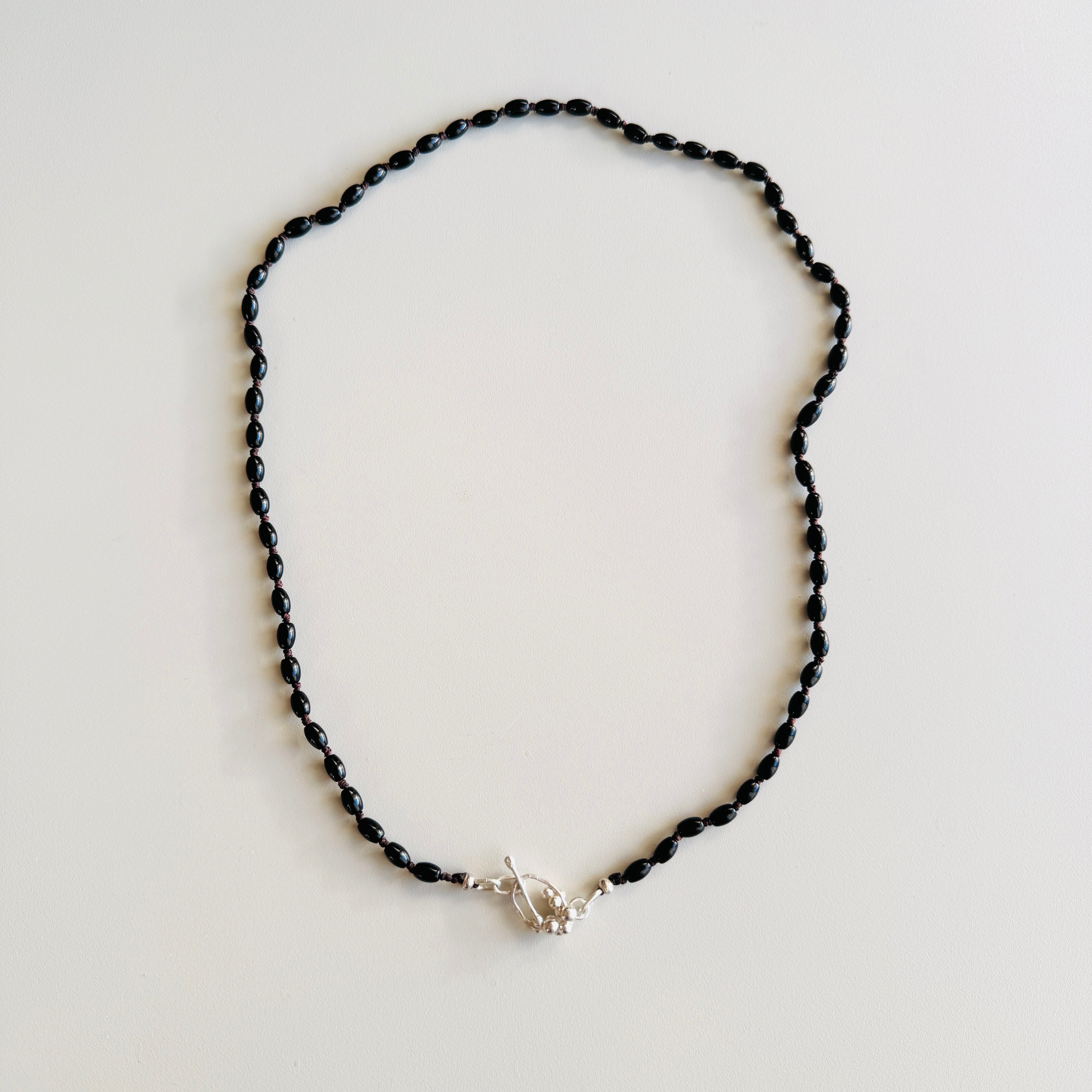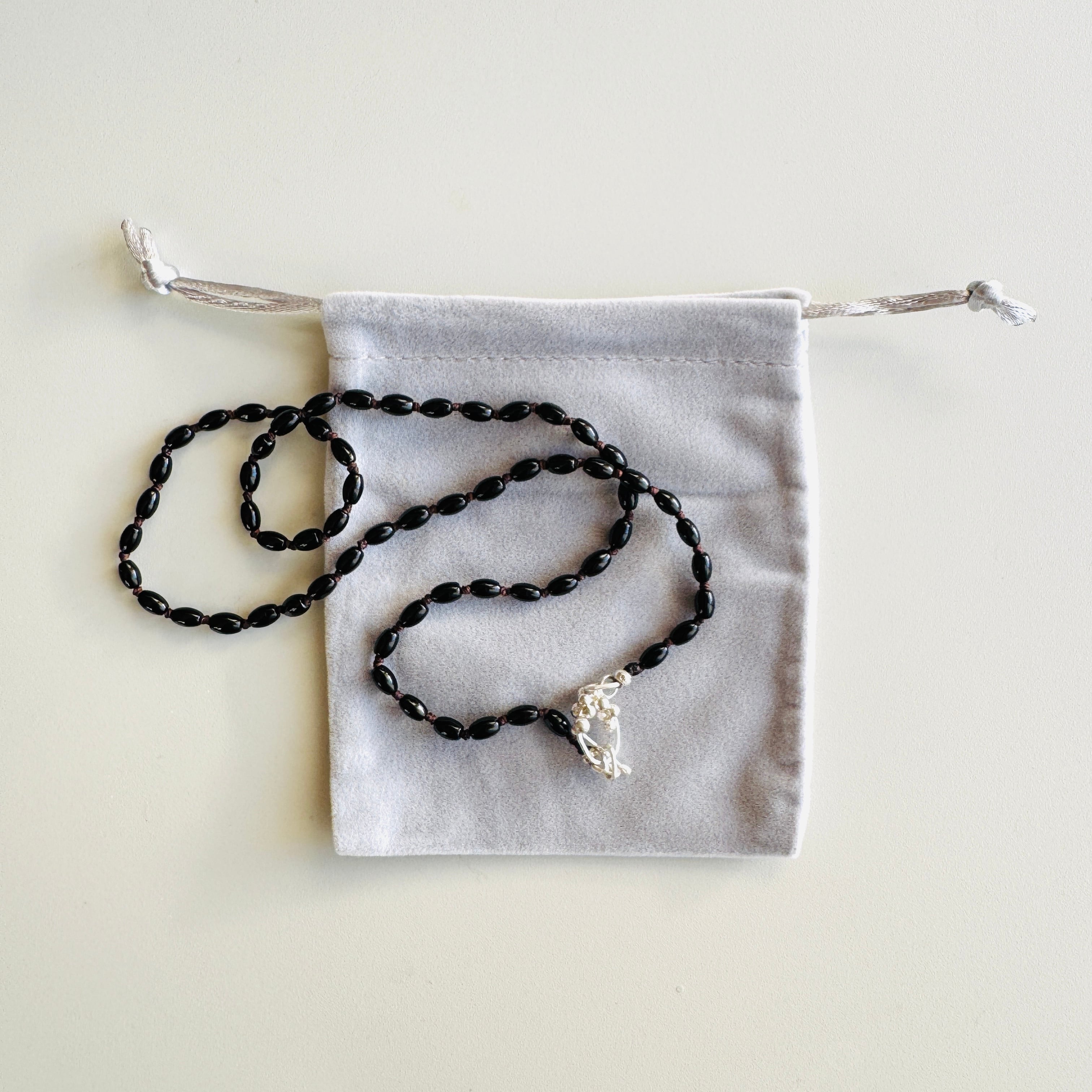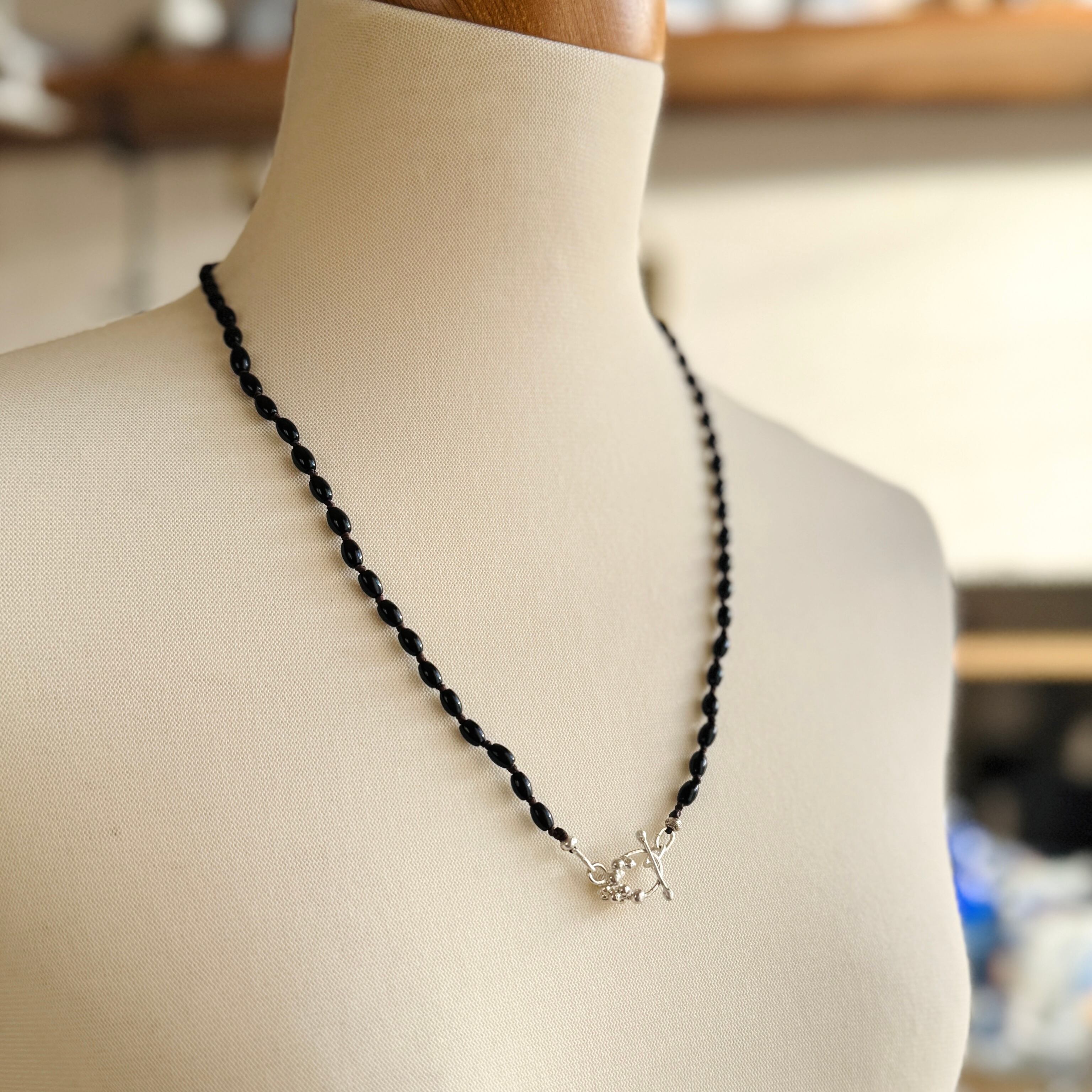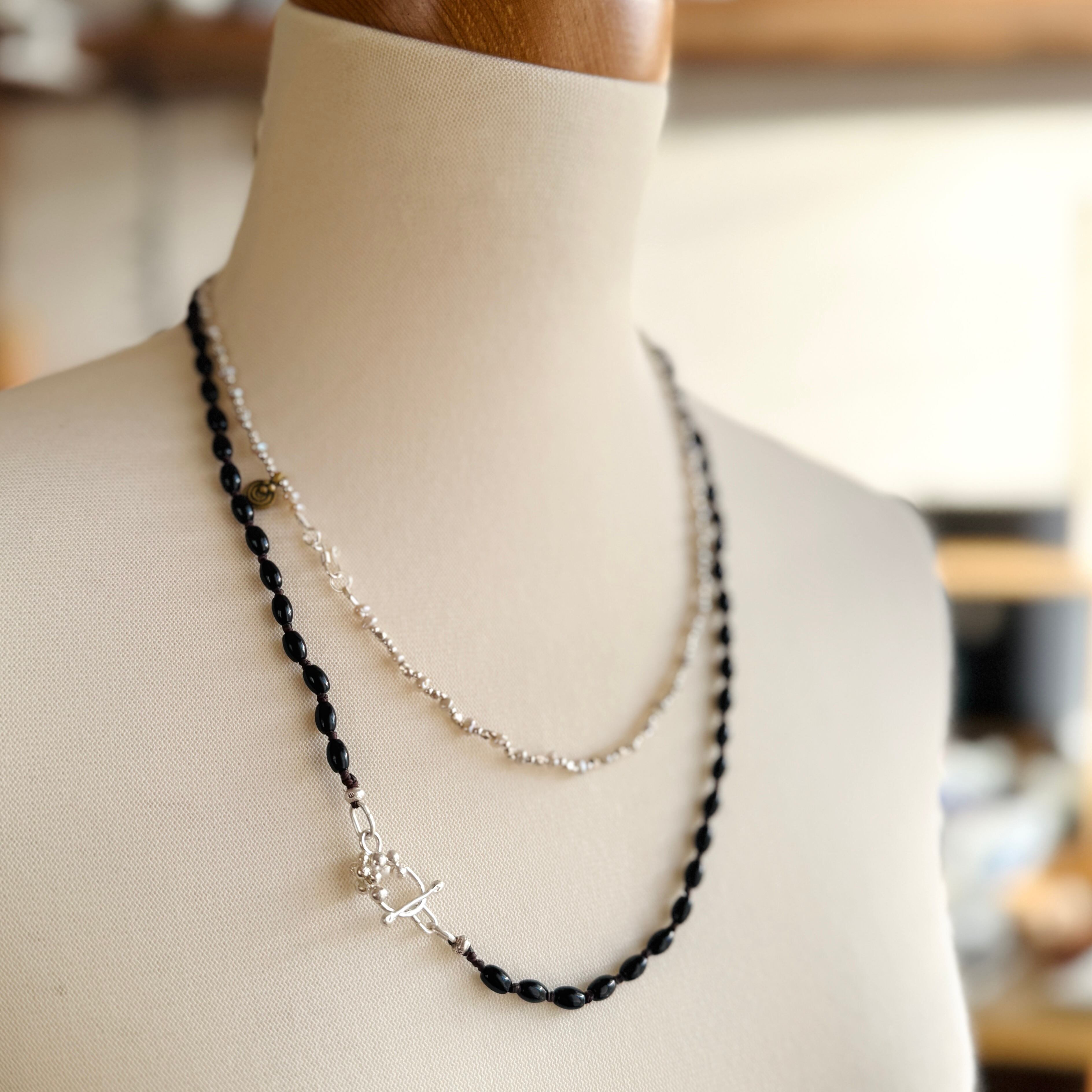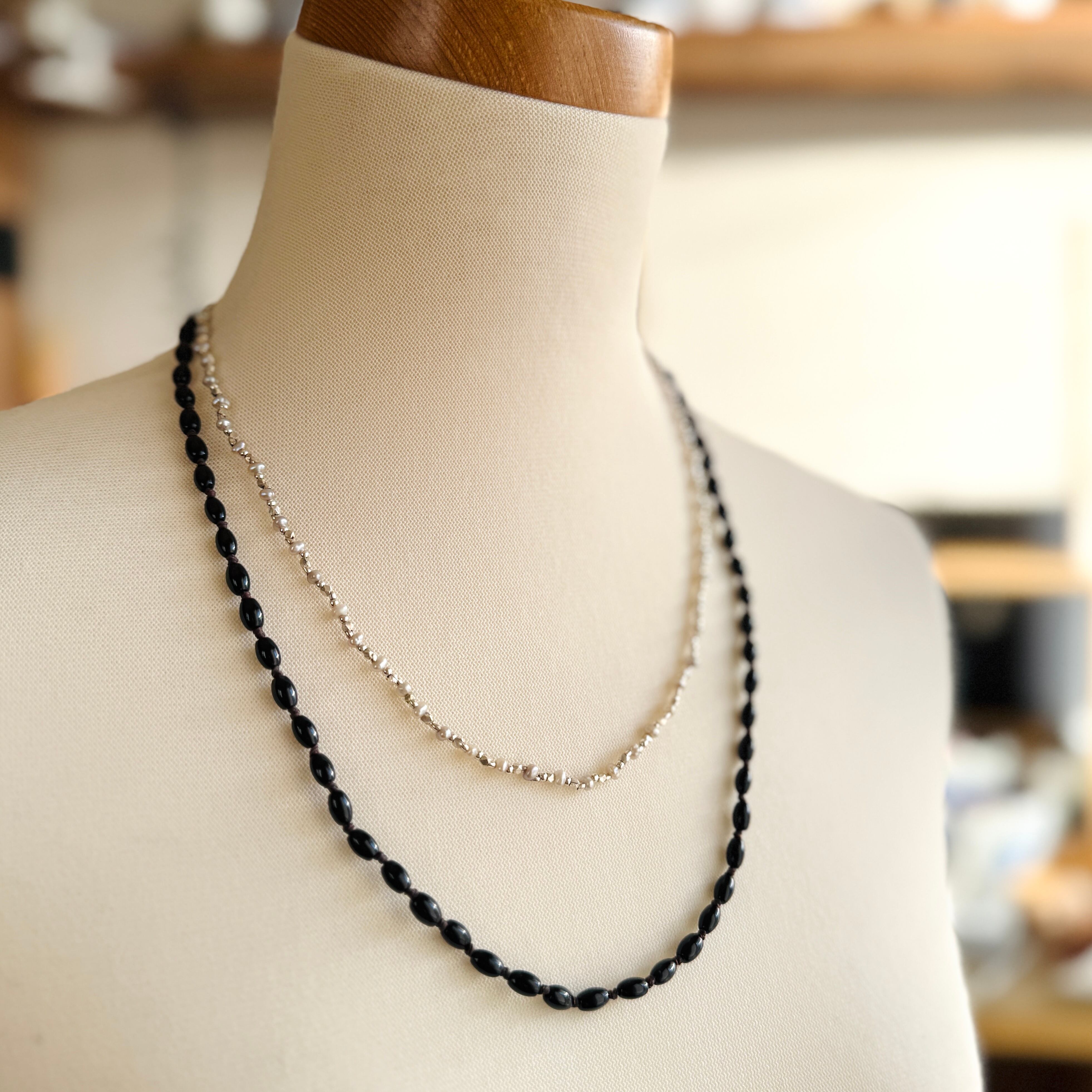 Back: シンプルなオニキスネックレスとして、お手持ちのジュエリーとの重ね付けに
