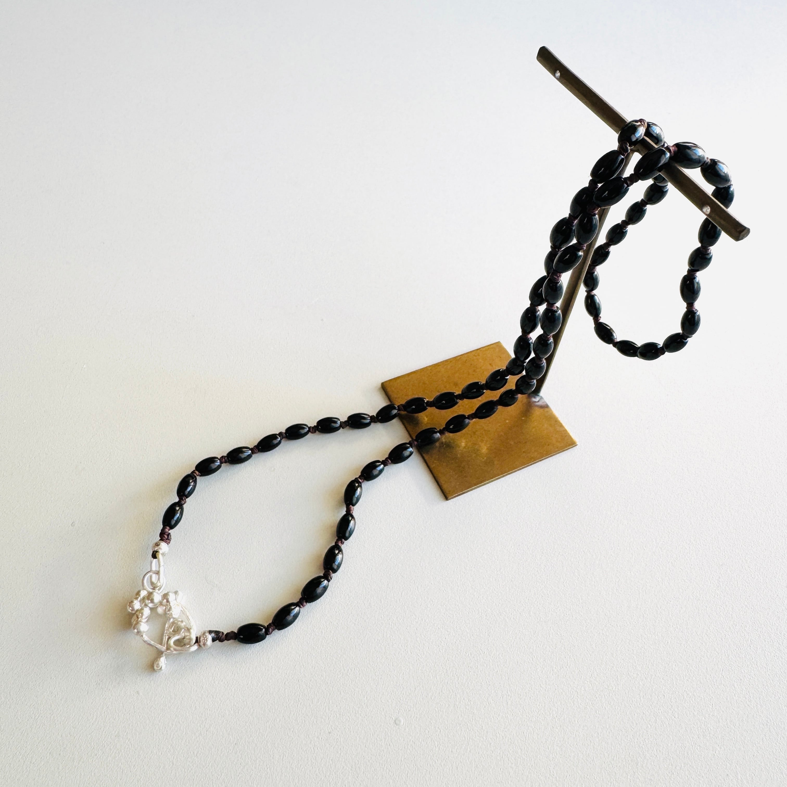 一粒一粒の間に結び目を作る「オールノット」という技法で、しなやかな流れを持つネックレスに仕立てました