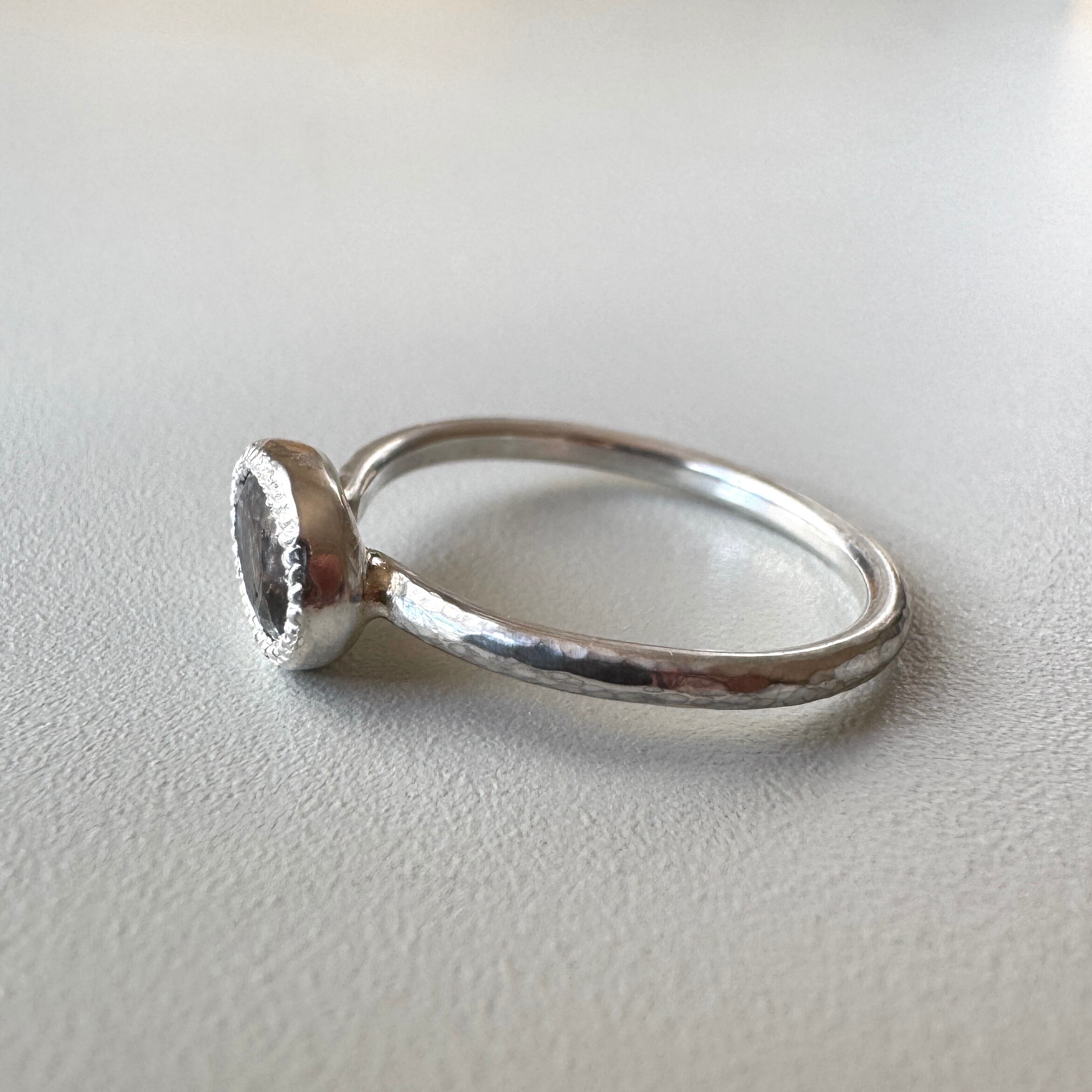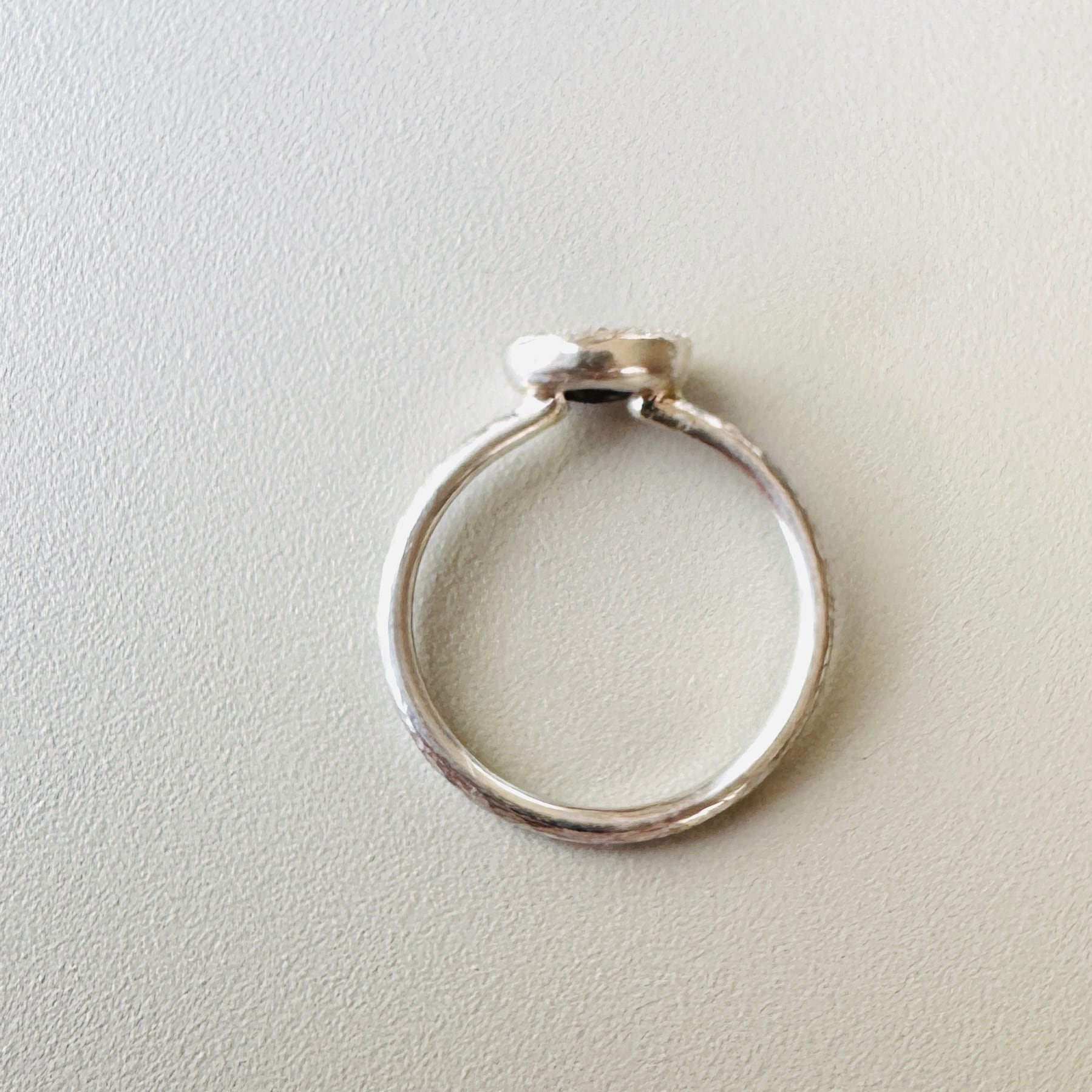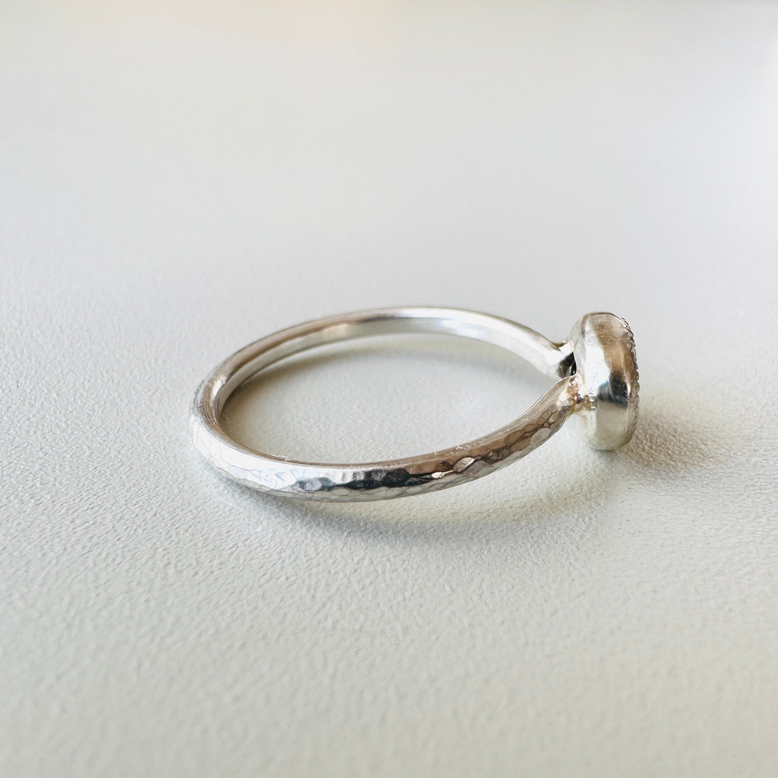 石のフレームには、アンティークのような情緒を感じさせるミル打ち装飾を施しました