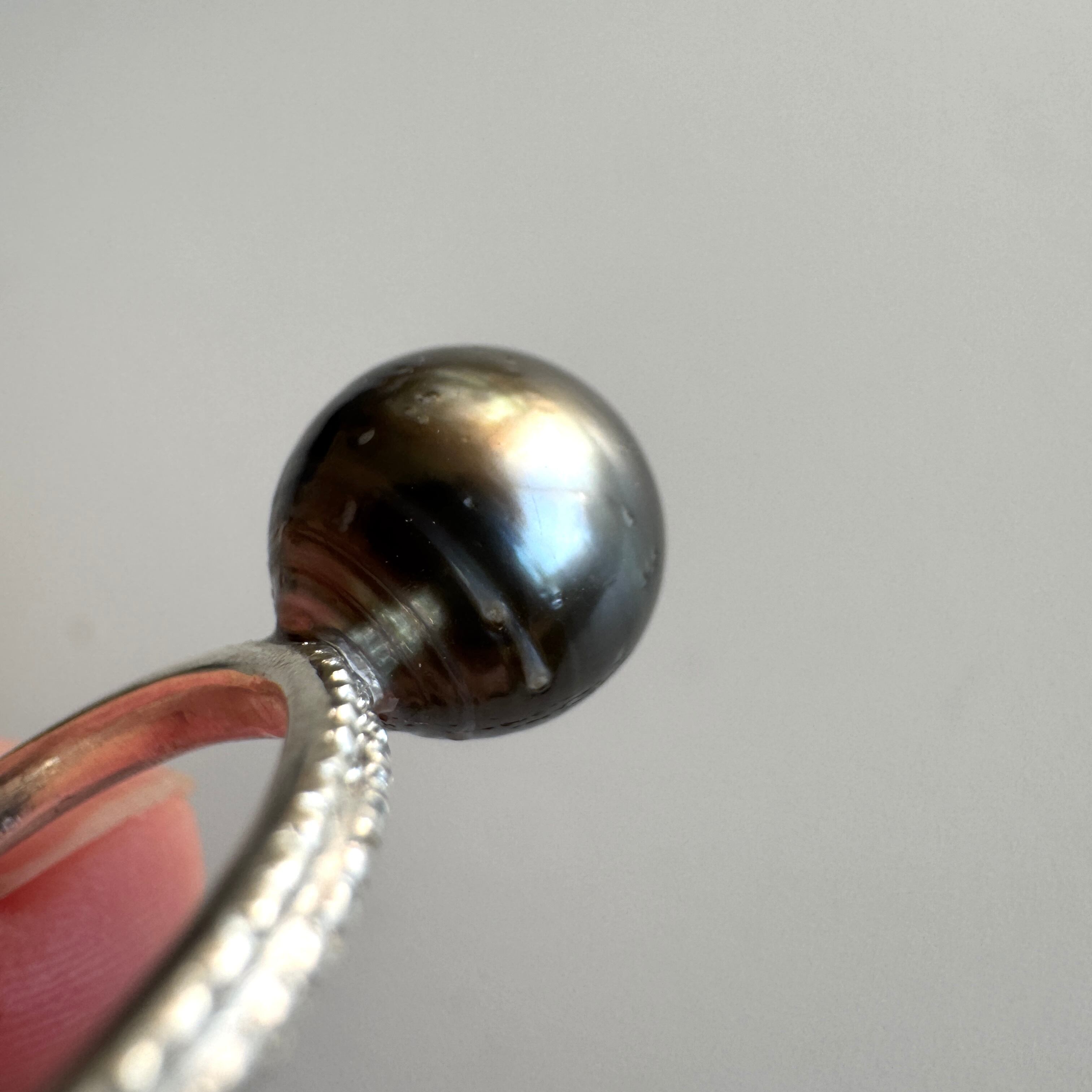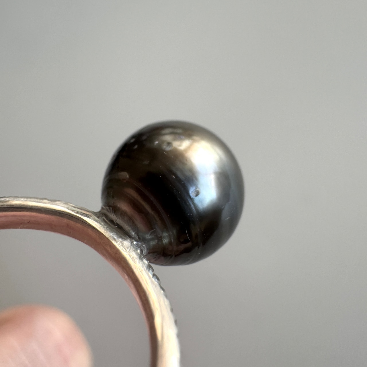 奥深いニュアンスグレーを湛えた、10mmの大粒タヒチパール