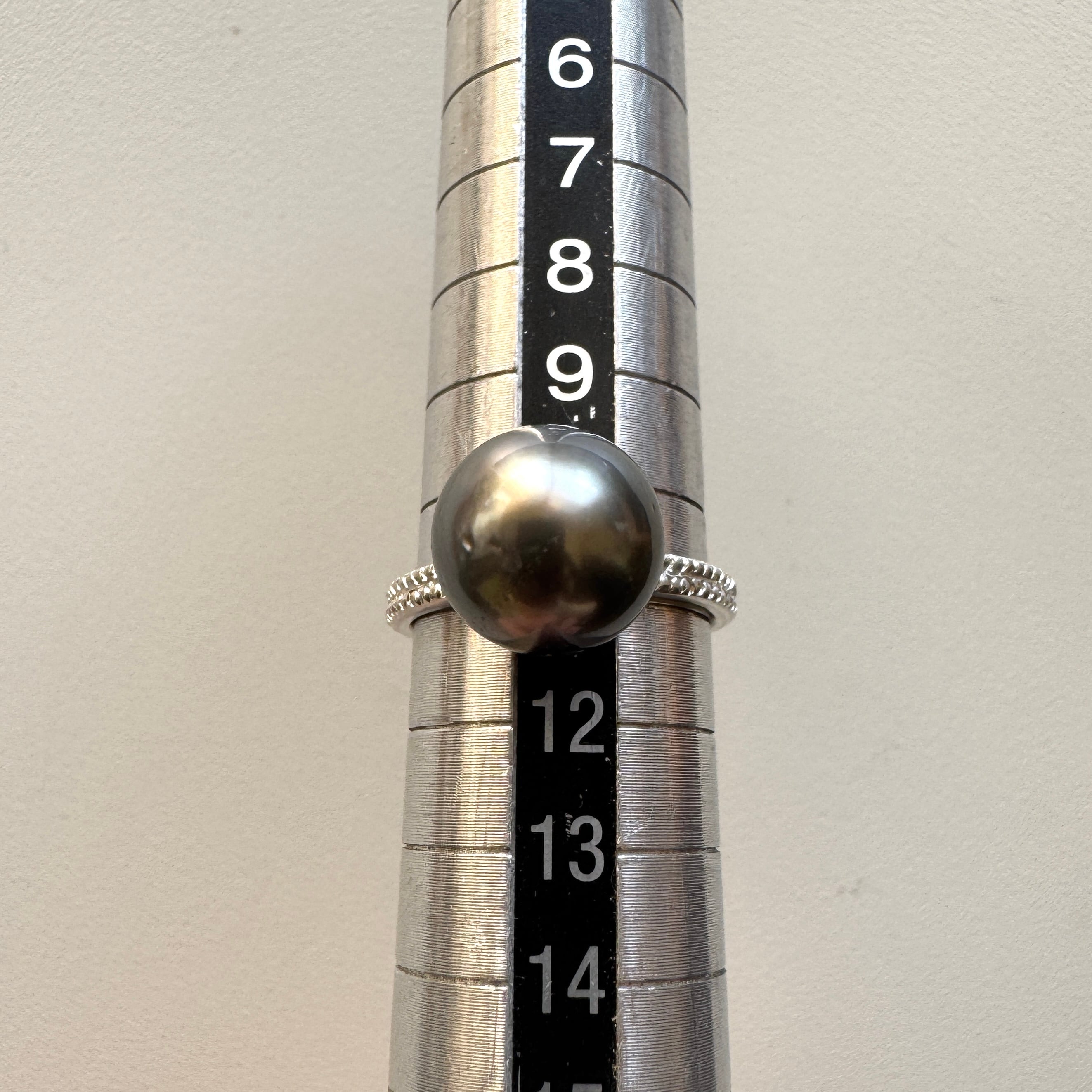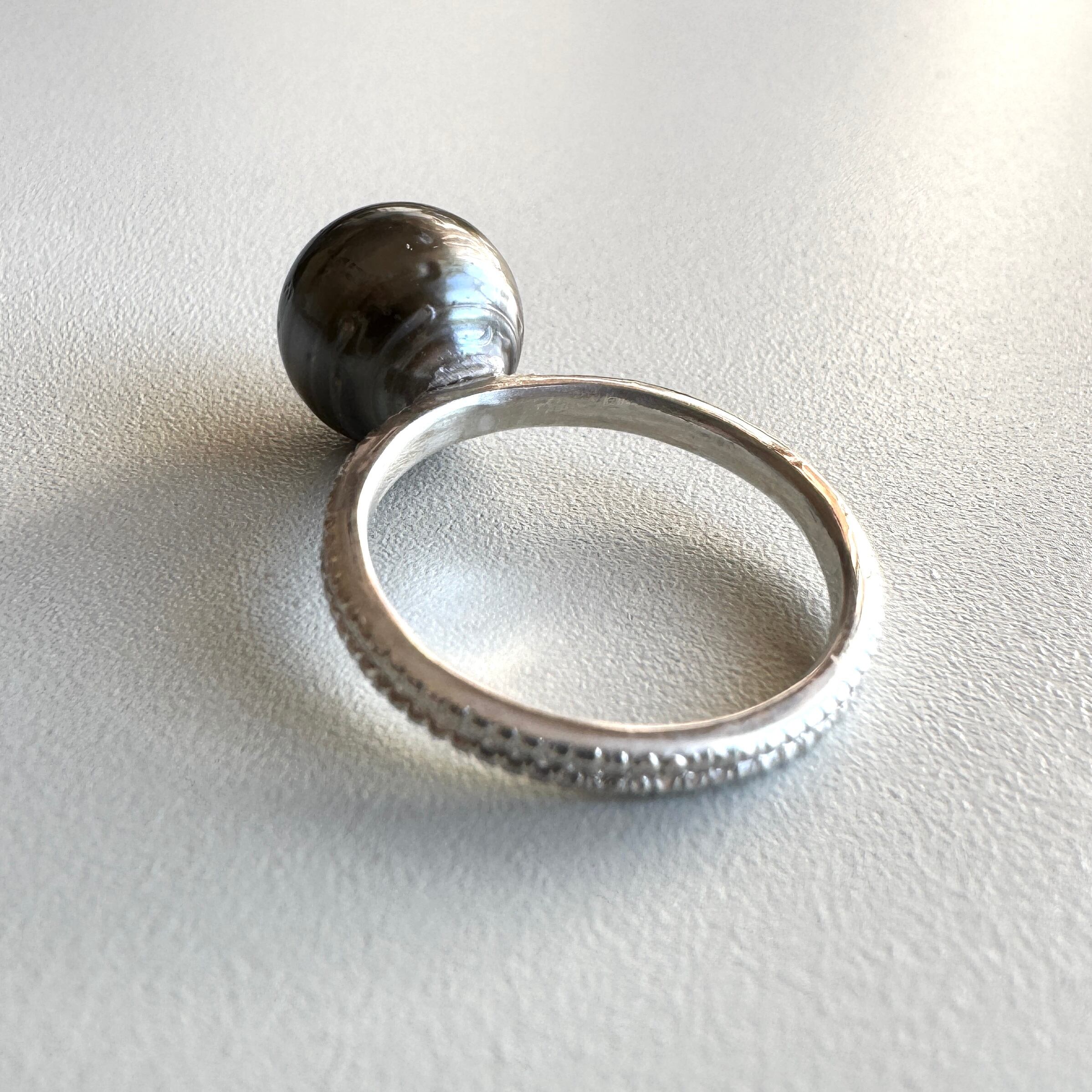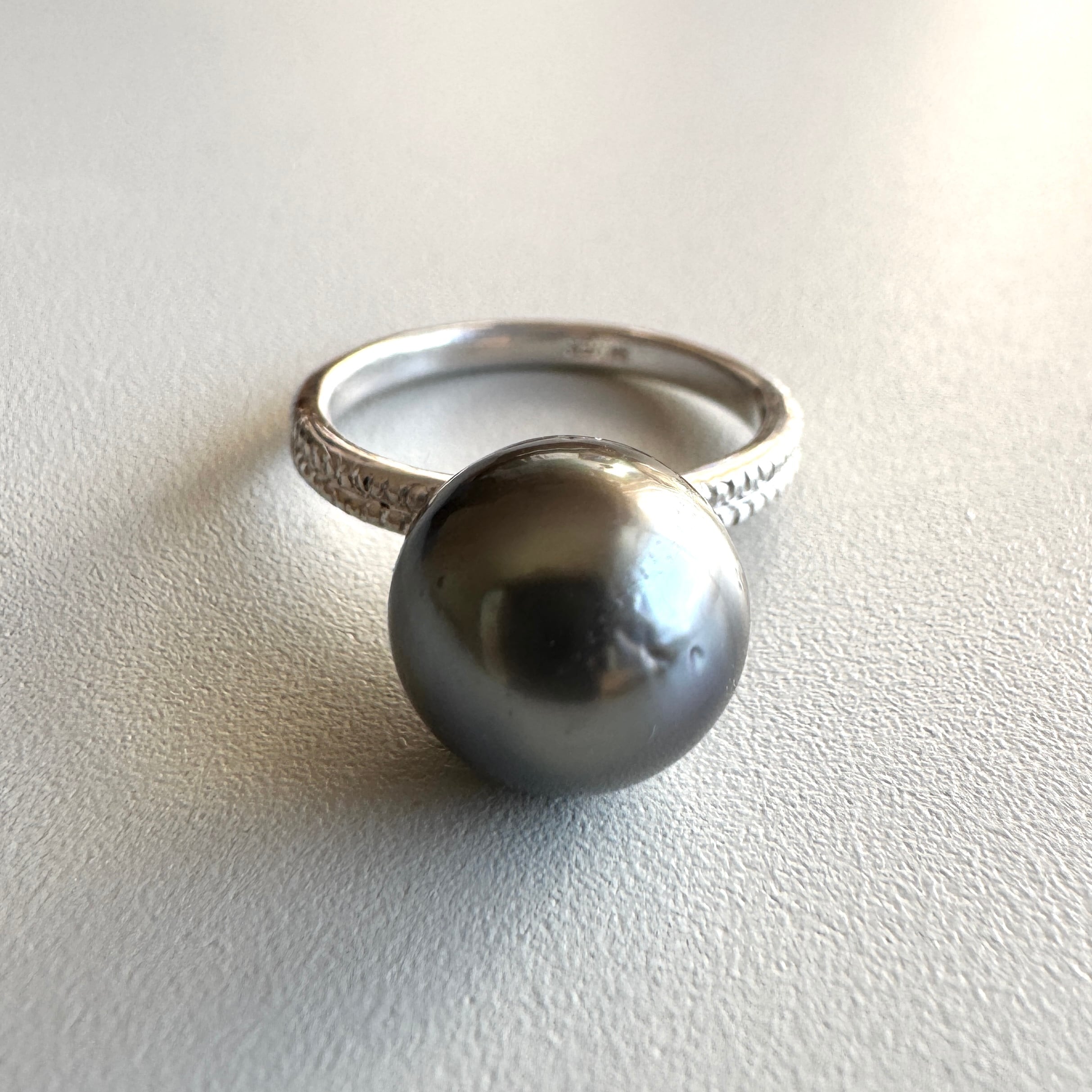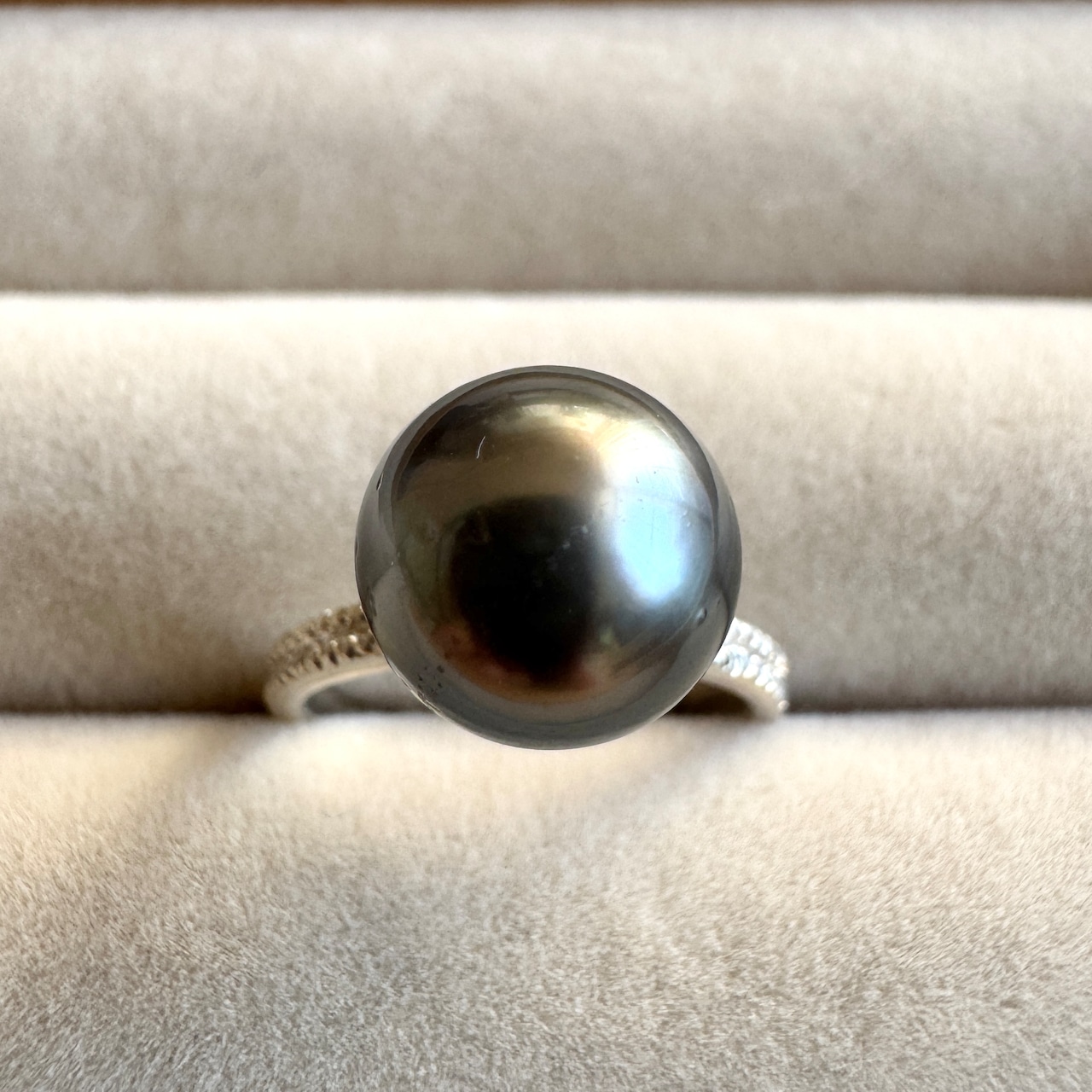 タヒチパール特有の多色性を含んだグレーは、光の当たり方によって銀色にも、深い霧のようにも見え、飽きることのない表情を見せてくれます