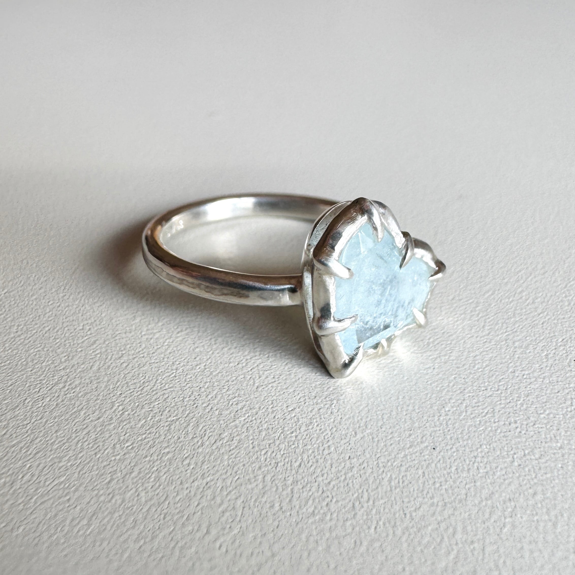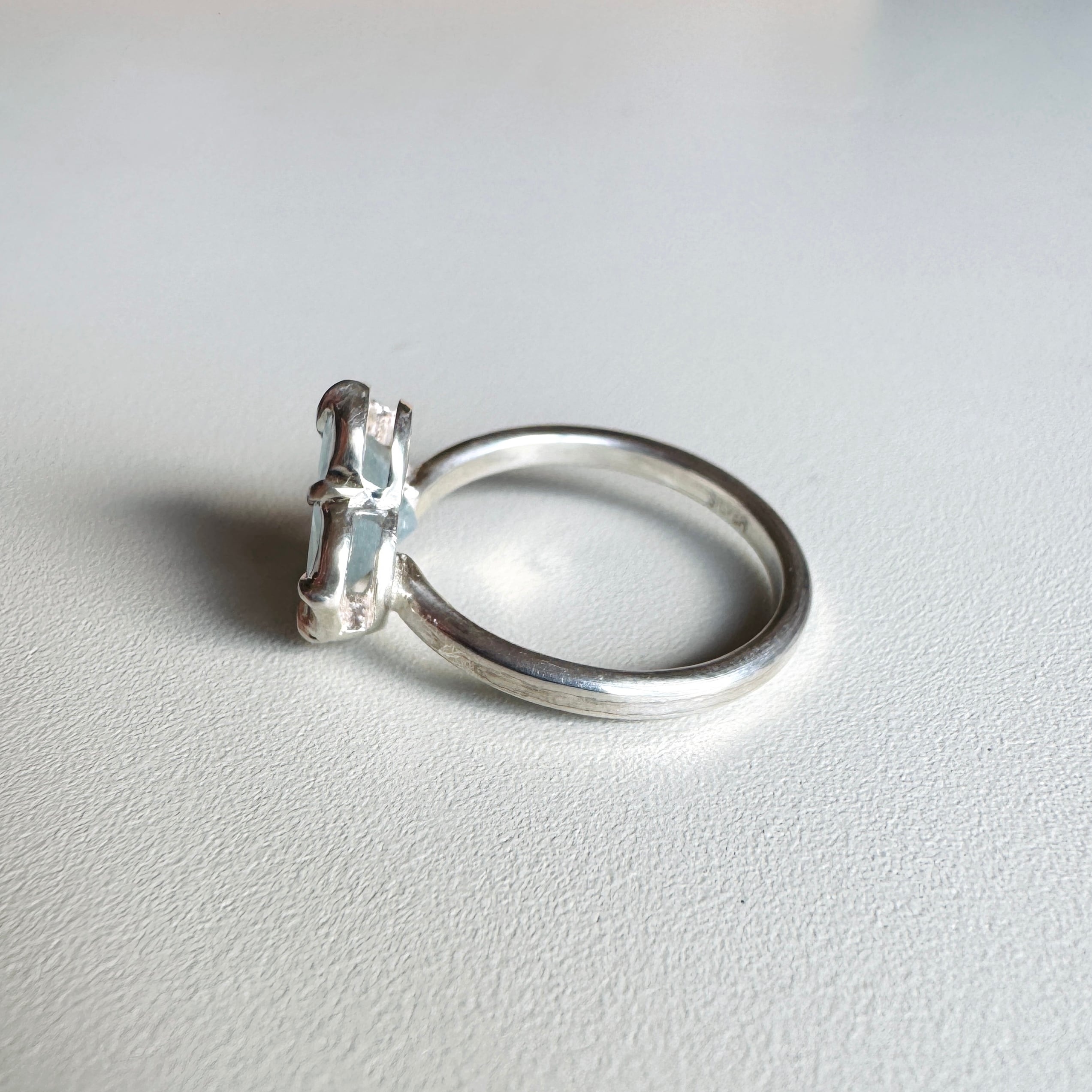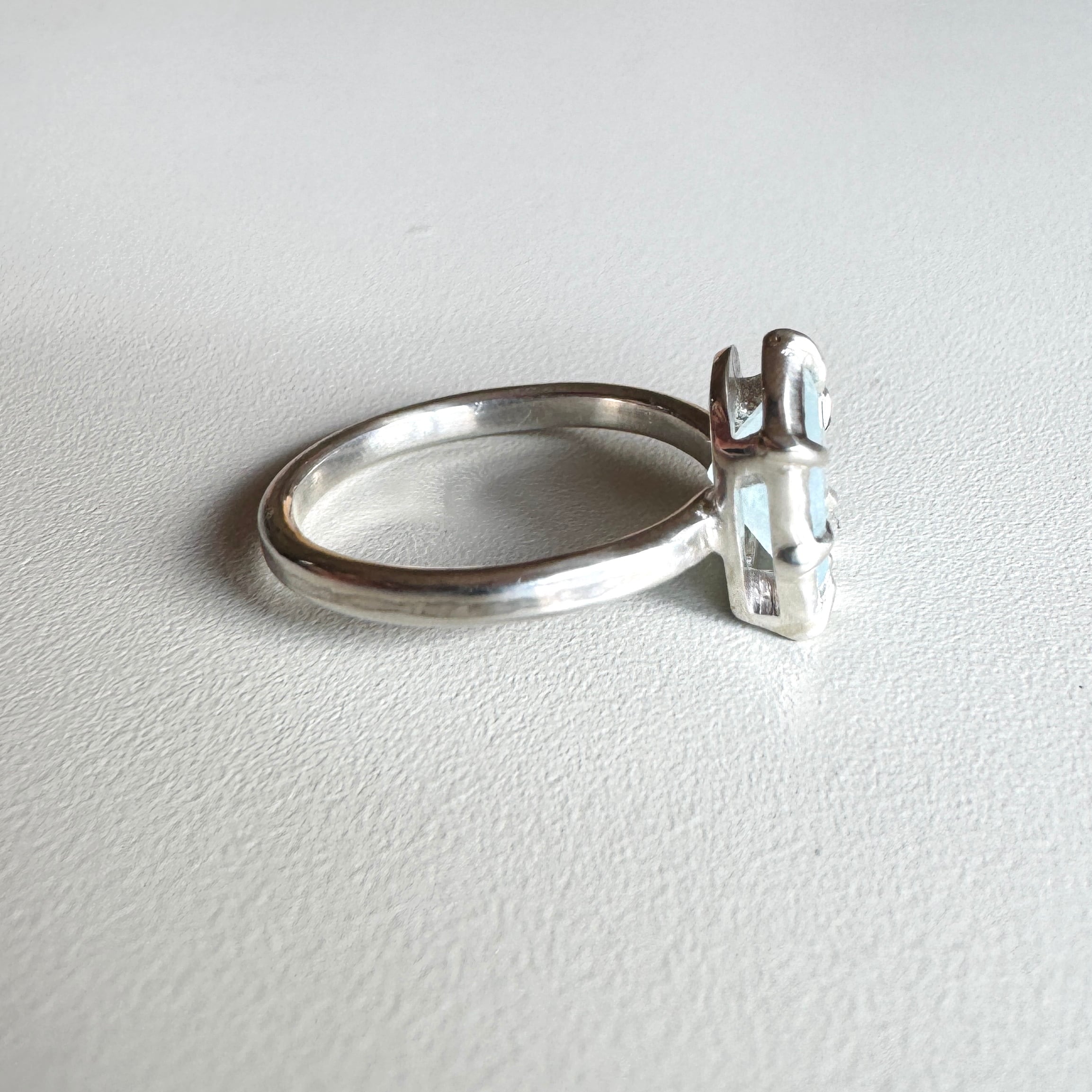石座をわずかに傾けたのは、重ねたリングにそっと寄り添うため