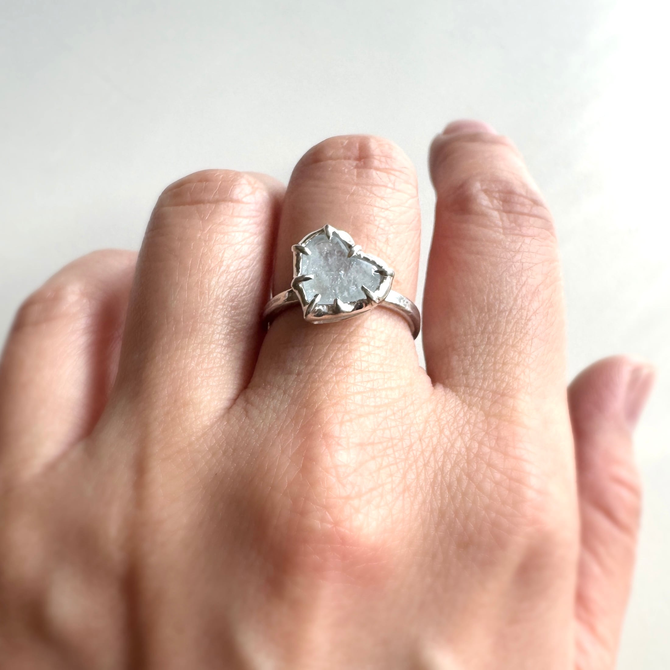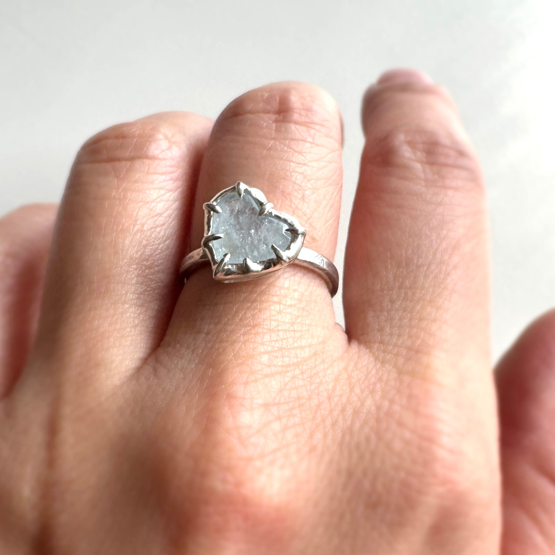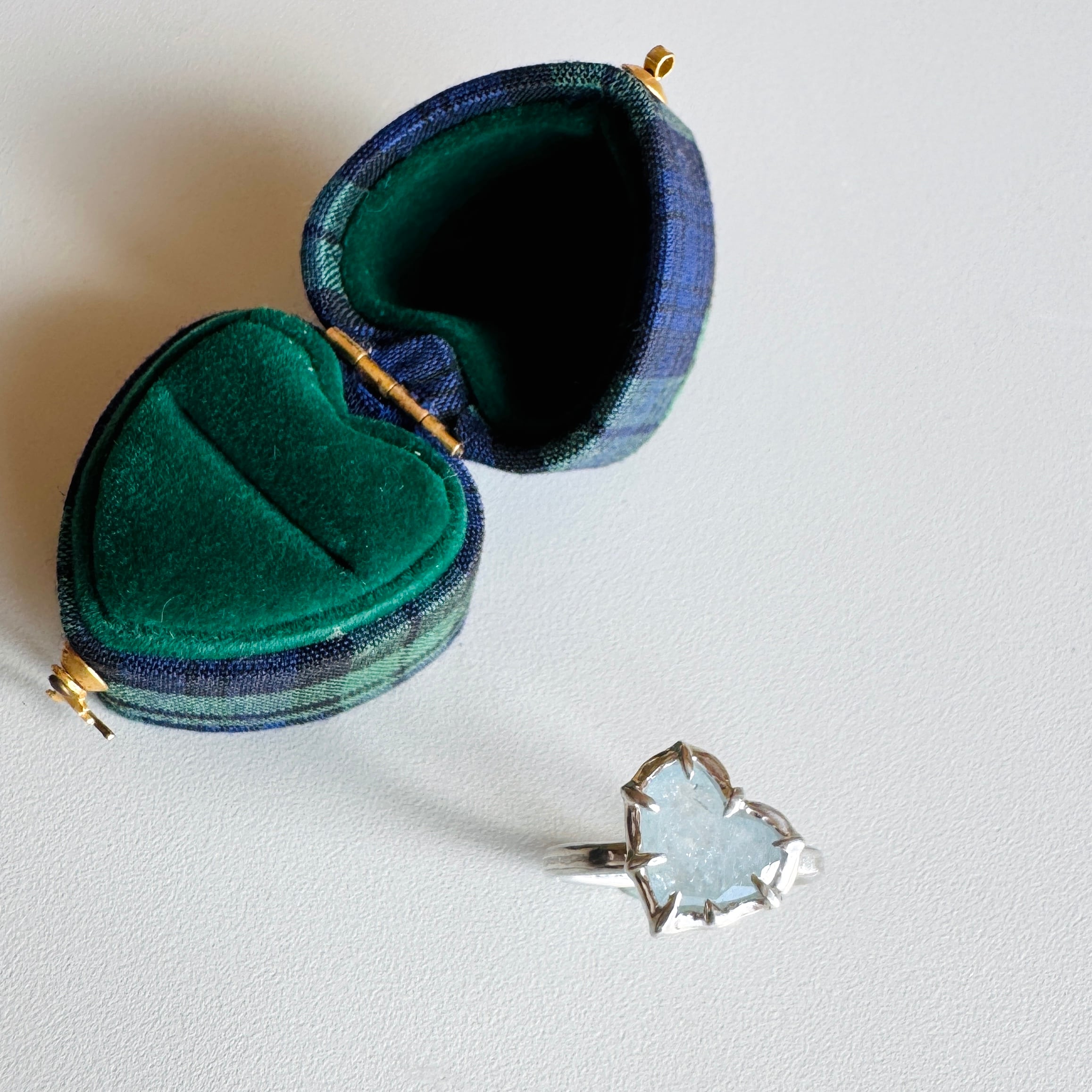石座をわずかに傾けたのは、重ねたリングにそっと寄り添うため